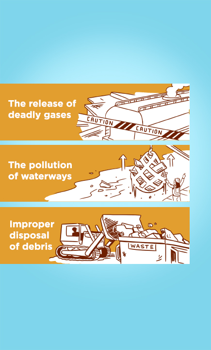 Tornadoes can damage work sites and storage facilities, and can release contaminants into the environment.